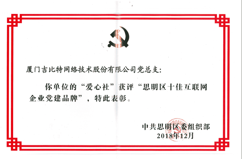 经初审评选、、网络评选和专家评审等环节,,,"厦门918.com网络技术股份有限公司党总支-爱心社" 从全区28个参评党建品牌中脱颖而出,,,,获评"思明区十佳互联网企业党建品牌"。。。